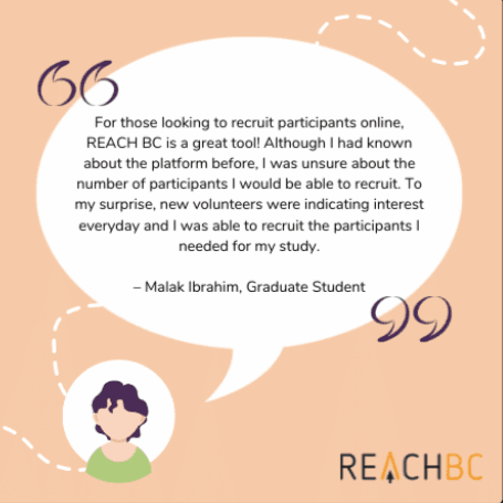 Malak Ibrahim, a Graduate Student in the Reproductive and Developmental Sciences program at UBC is working in the Talhouk Lab assisting with recruitment for the Spot the Difference Study . Malak kindly shared her experience with using REACH BC to recruit.