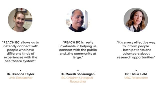 Improving the recruitment of patients for health studies is essential for the success and validity of the research. By using a platform that increases visibility and accessibility, study investigators can reach a diverse pool of participants with ease. REACH BC is an innovative online platform designed to streamline the recruitment process for health studies across British Columbia. By leveraging REACH BC, researchers can efficiently and ethically recruit participants, ensuring successful and impactful health research.